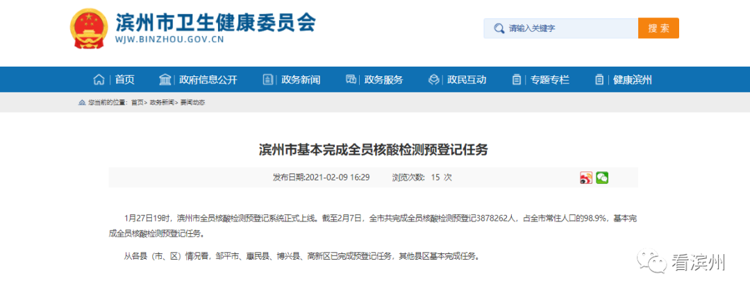 “濱州市全員核酸檢測(cè)預(yù)登記”已順暢